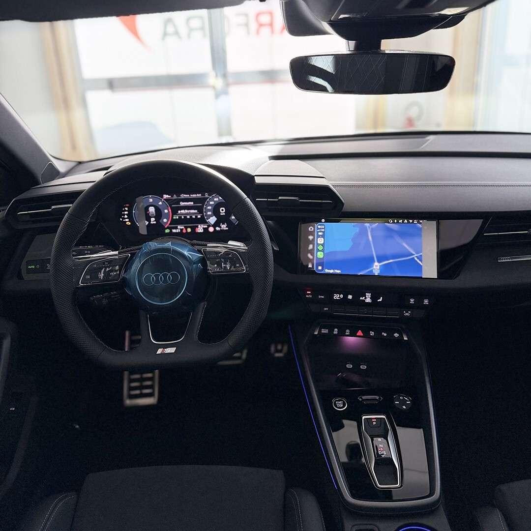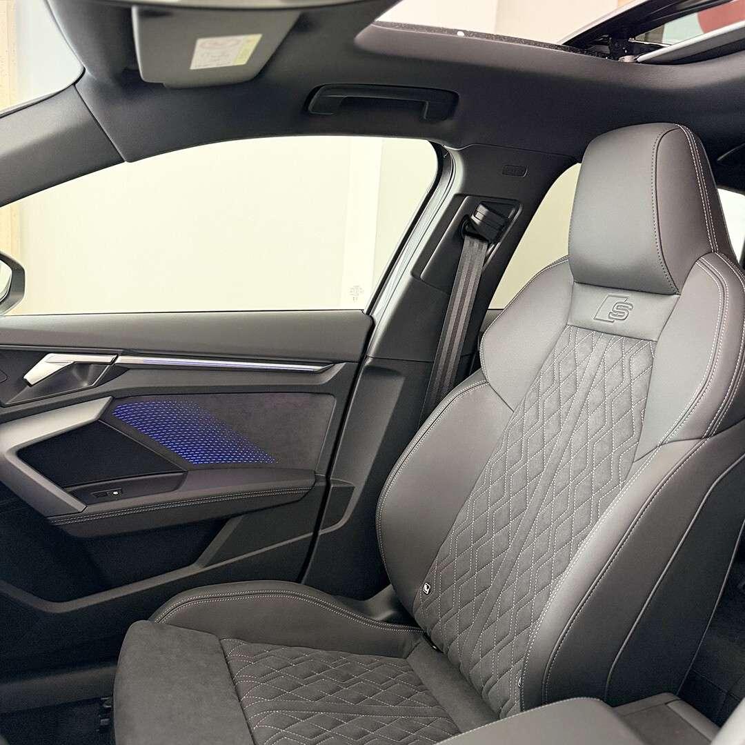 Grigio Daytona metallizzato, Assetto sportivo, Cerchi in lega Audi Sport, design a 5 razze, Chiave comfort, Pacchetto interni S con sedili sportivi in pelle scamosciata, Pacchetto look nero plus, Portellone vano bagagli ad apertura e chiusura elettrica, Tetto panoramico apribile in vetro, Vetri posteriori e lunotto oscurati, full led, sensori di parcheggio ant&post, telecamera posteriore, drive select, ricarica wireless, volante s appiattito, ambient light plus con pannello illuminato, personalizzazione design luci esterne e altri accessori di serie...