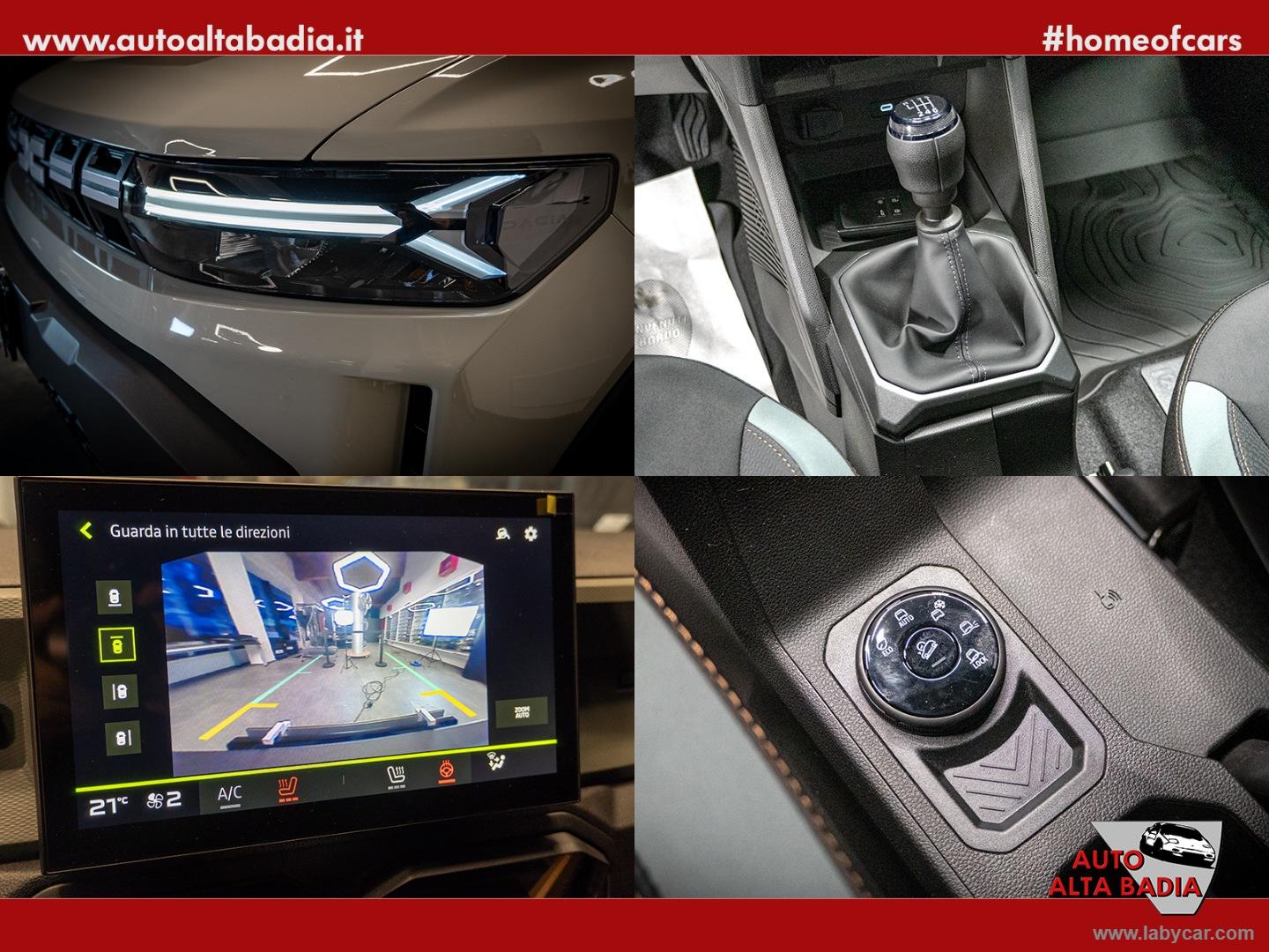Sellerie TEP MicroCloud con logo Dacia impresso • Ruota di scorta • Pack Parking • Blind Spot Warning • Sensori di parcheggio anteriori e laterali • Telecamera 360 • Design cerchi in lega diamantati Tergan con logo Dacia in rame da 17 •